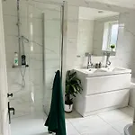 La 5 Bedroom Detached Family Home dispone di un bagno con un bagno con WC separato e una doccia. Gli asciugacapelli e i teli da bagno garantiscono un'esperienza confortevole.